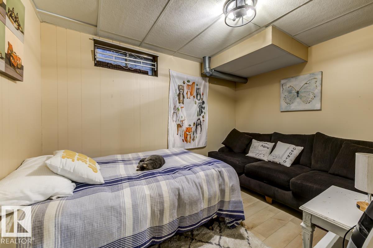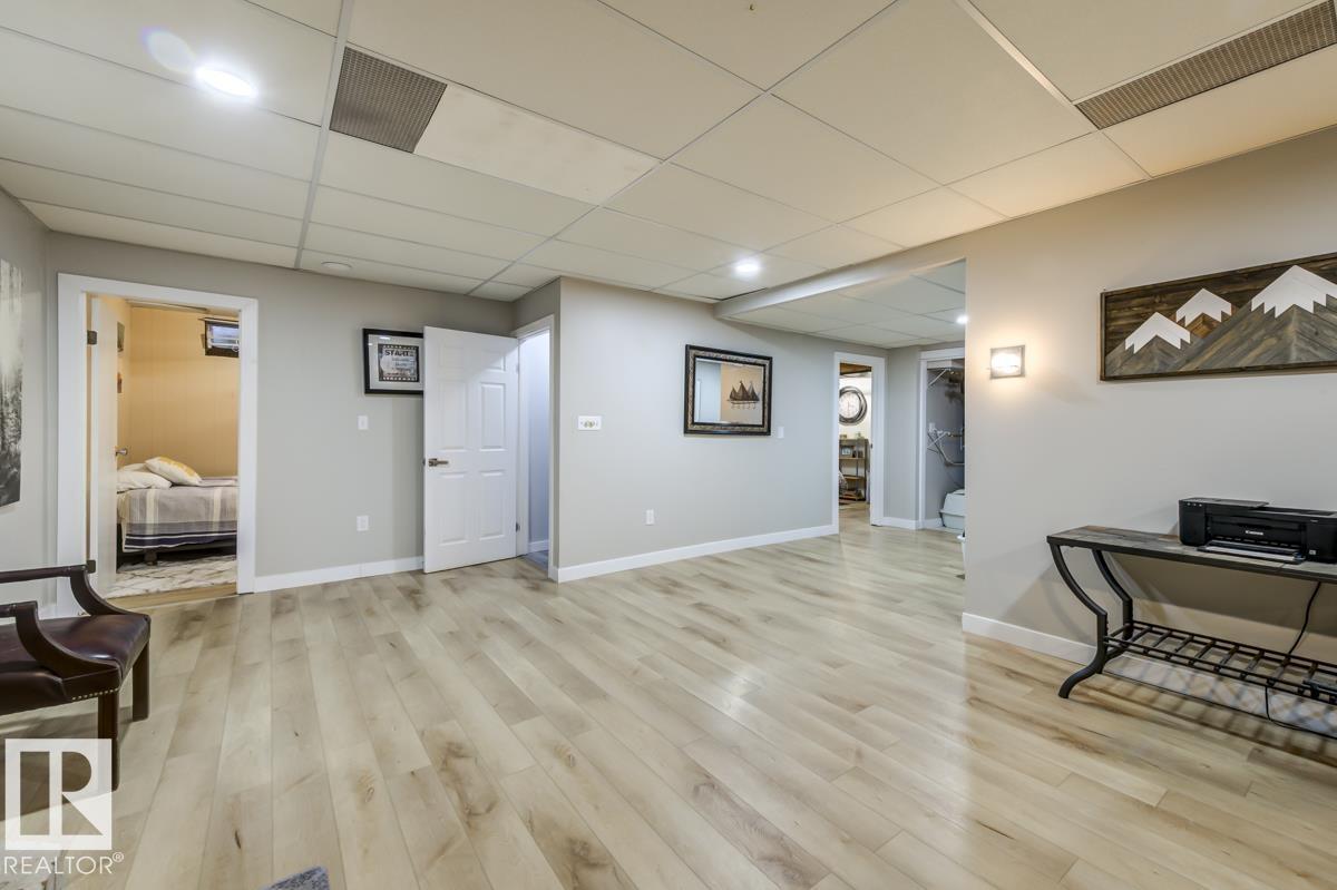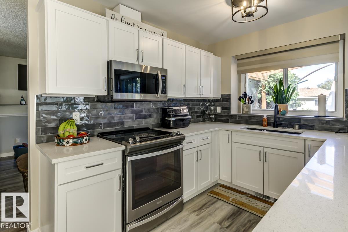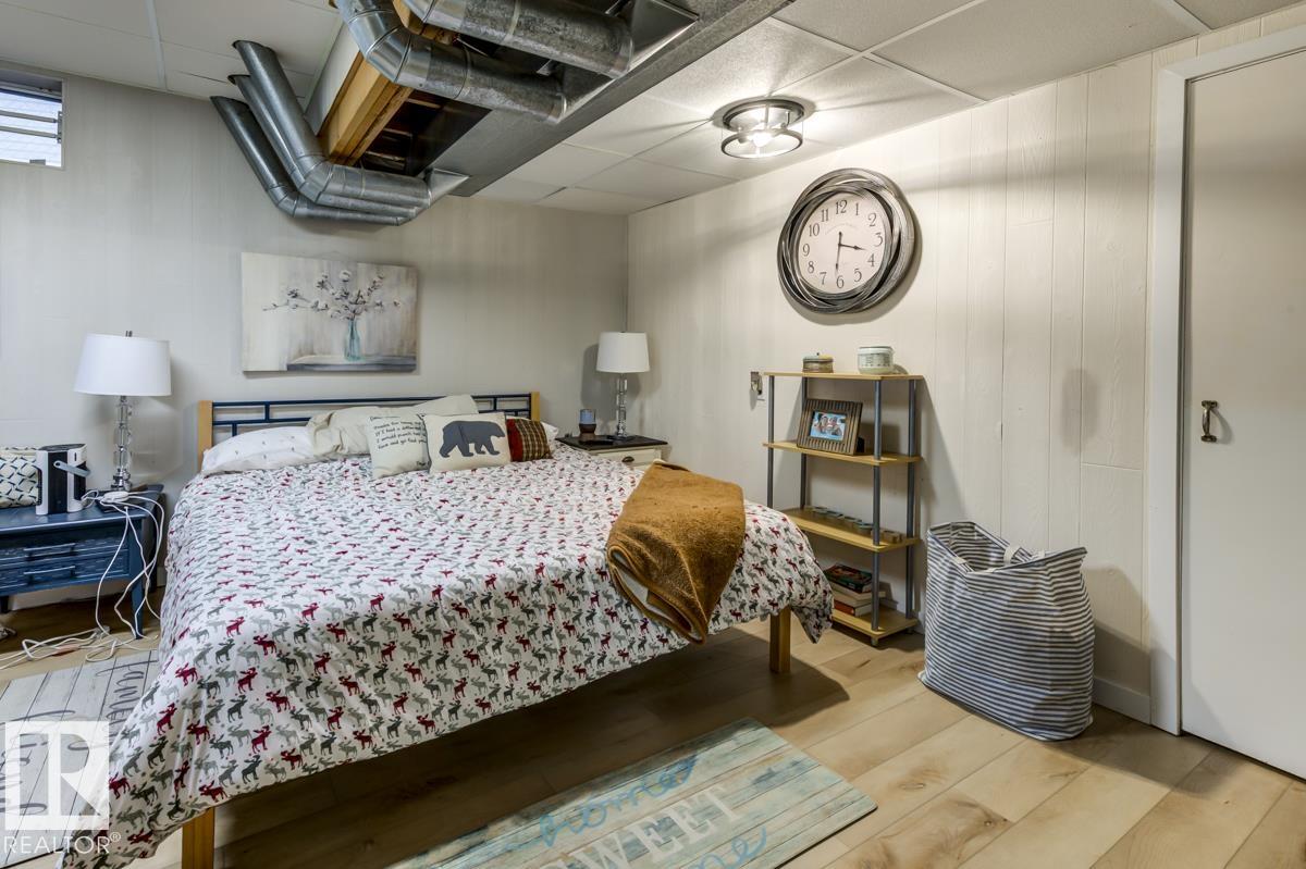Step into this spacious, family-friendly 5-bedroom bungalow featuring a crisp modern kitchen that offers stainless steel appliances, endless counter space, and room to cook, dine, and entertain. The bright front living room/dining room/entry is open and airy, contrasting beautifully with a cozy family room with a charming brick wood-burning fireplace. The king-sized primary suite includes dual closets and a 3-piece ensuite, while two additional bedrooms and a full bath complete the main floor. Downstairs, enjoy a fully finished basement with durable vinyl plank flooring, two versatile bedrooms or offices, updated bathroom, laundry area, massive rec room, and ample storage. The oversized heated garage is ideal for a workshop, and the large exposed aggregate parking pad is perfect for guests or older kids. Outside, the generous backyard boasts mature landscaping, a partially covered deck, garden shed, and even room for a pool (not included). All this just steps from parks, playgrounds, and pickleball court