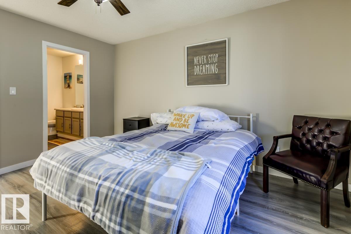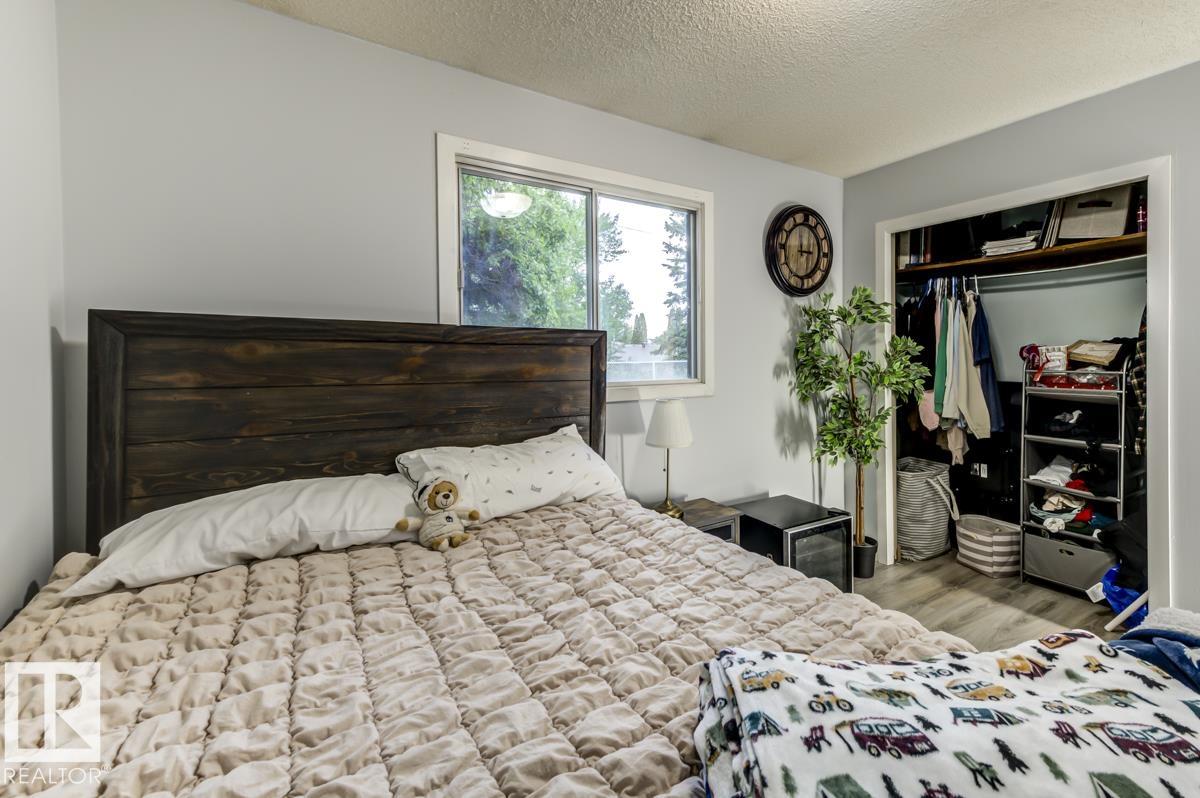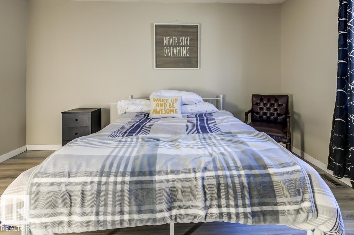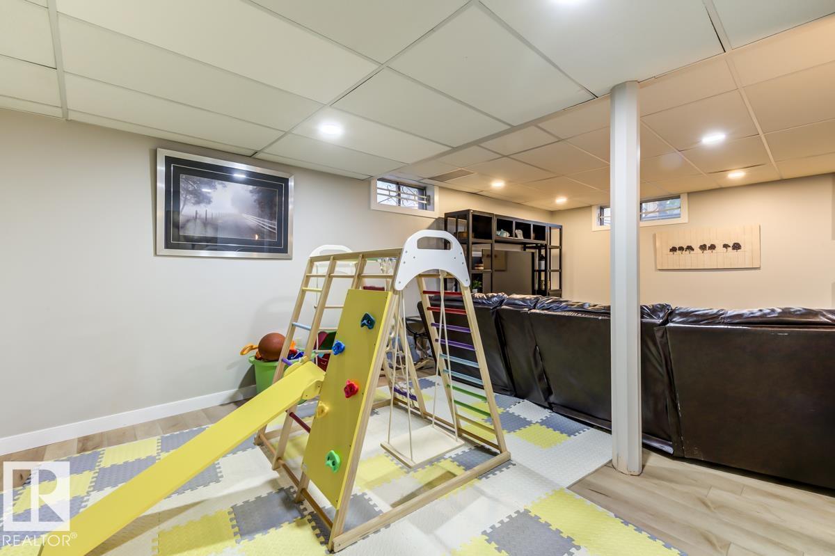 Step into this spacious, family-friendly 5-bedroom bungalow featuring a crisp modern kitchen that offers stainless steel appliances, endless counter space, and room to cook, dine, and entertain. The bright front living room/dining room/entry is open and airy, contrasting beautifully with a cozy family room with a charming brick wood-burning fireplace. The king-sized primary suite includes dual closets and a 3-piece ensuite, while two additional bedrooms and a full bath complete the main floor. Downstairs, enjoy a fully finished basement with durable vinyl plank flooring, two versatile bedrooms or offices, updated bathroom, laundry area, massive rec room, and ample storage. The oversized heated garage is ideal for a workshop, and the large exposed aggregate parking pad is perfect for guests or older kids. Outside, the generous backyard boasts mature landscaping, a partially covered deck, garden shed, and even room for a pool (not included). All this just steps from parks, playgrounds, and pickleball court