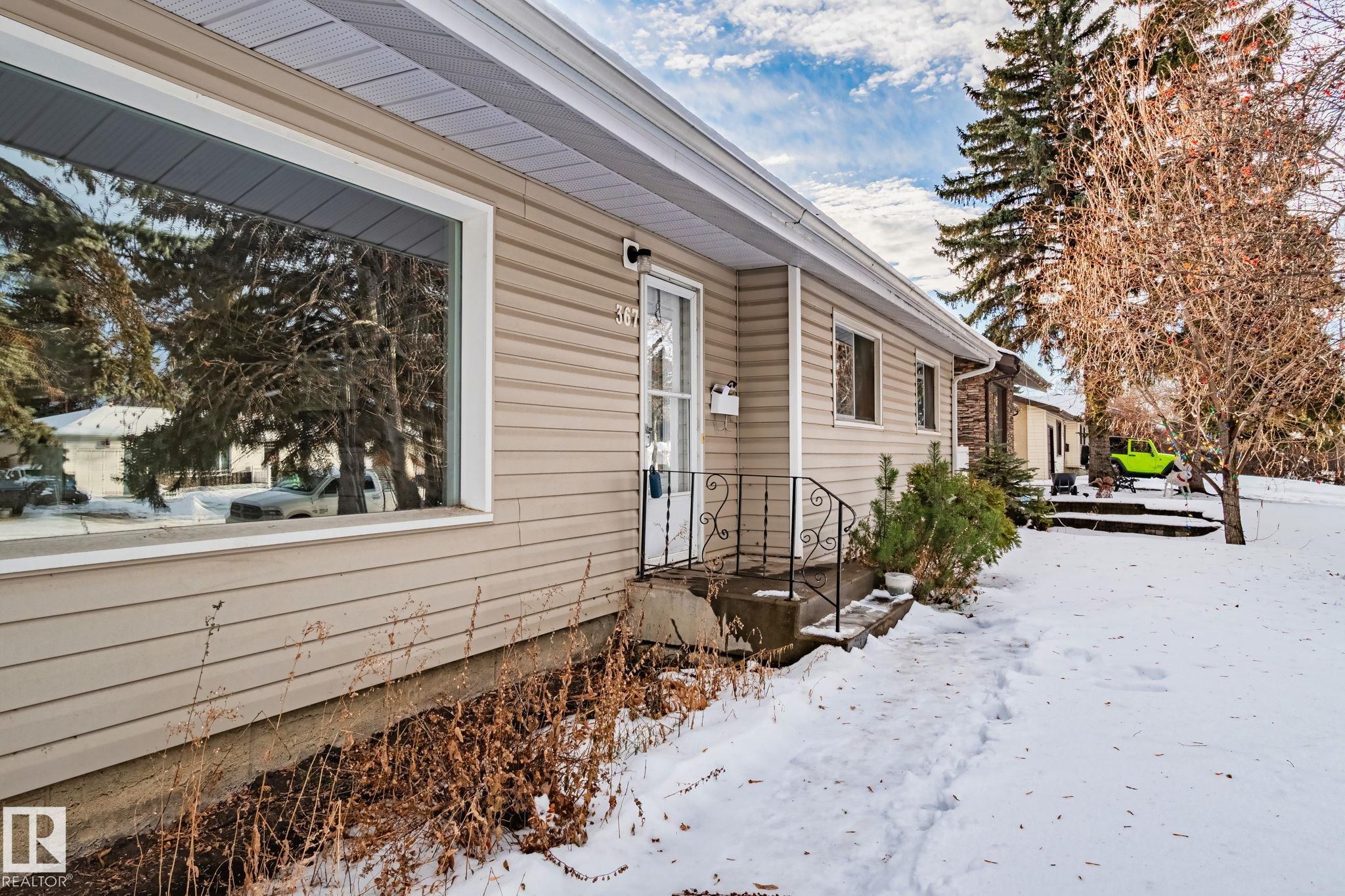 Well-located bungalow with a huge yard and endless potential in Sherwood Heights! This 1,300 sq.ft bungalow sits on an impressive 60? x 120? lot, just one block from Sherwood Heights Park. You?ll love the unbeatable location?close to multiple schools, rinks, ball diamonds, pickleball courts, and childcare facilities. The exterior features low-maintenance vinyl siding and large windows that fill the home with natural light. Step outside to the southeast-facing backyard, perfect for relaxing or entertaining on the back deck. Inside, the main level offers three bedrooms and a full bathroom, along with two inviting living areas? providing extra space for family or guests. The bright white kitchen overlooks the expansive yard, and the dining area is perfect for guests and open to the lving room. A shared basement landing leads to the lower level just past the dining area.The basement includes a large utility/laundry area, an open recreation space, and a former bedroom area ready for your finishing touches.