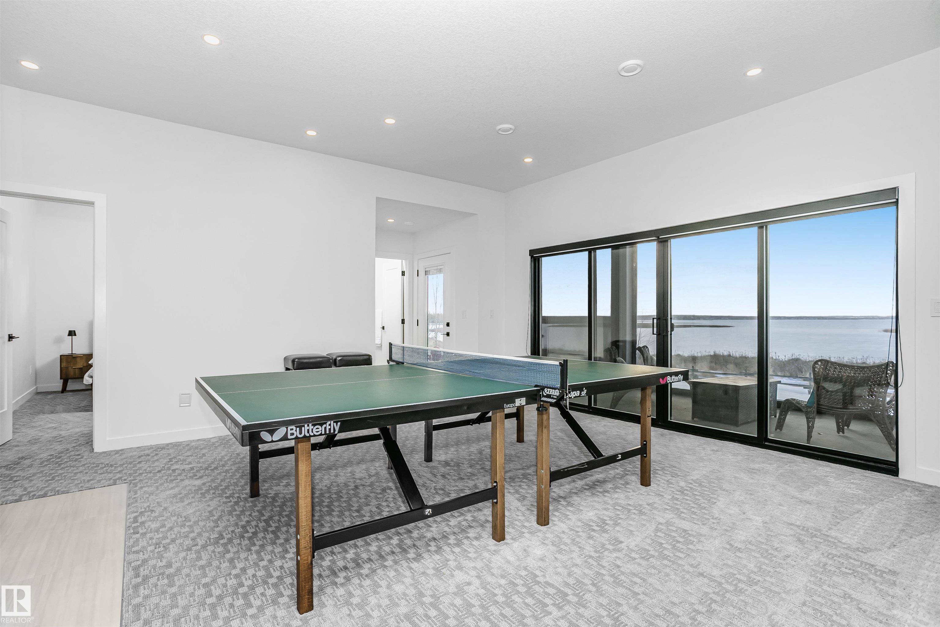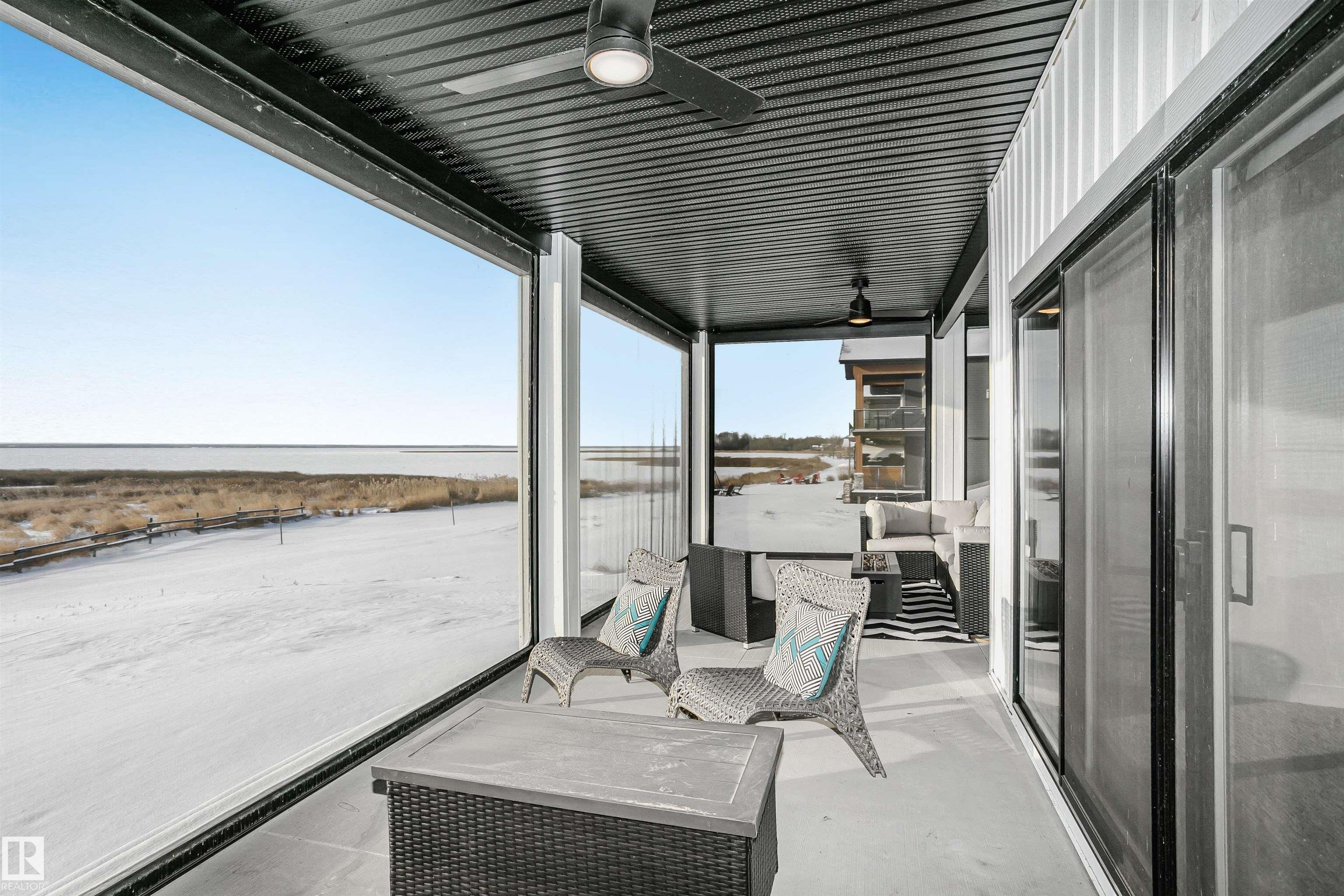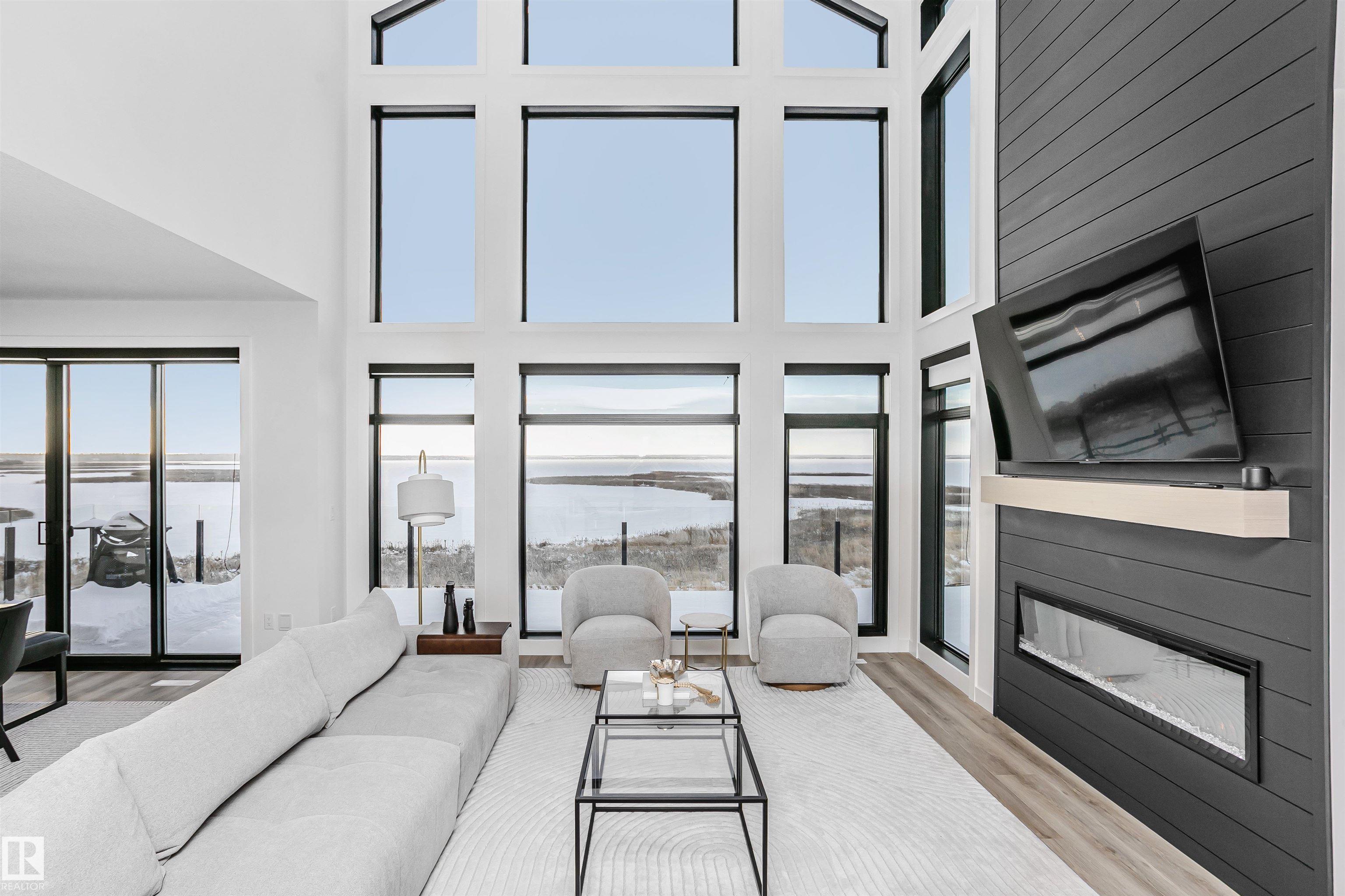 Amazing custom built WATERFRONT WALKOUT 2 story now available. Soaring vaulted clearstory story ceilings on the main floor great room featuring an island kitchen, large lakeside dining, floor to ceiling f/p feature, glass wall to den and large patio sliders out to the south facing main deck. The main floor is also host to a large front entry, garage mudroom (both with hockey benches), a 2 piece bath, laundry and walkthrough pantry. Rise up the open web stair case with custom rail to the upper floor which is home to 2 PRIMARY bedrooms with ensuites, walk-in closets and each its own private lakeside deck. They are on opposite ends of the home connected by a bridge. Downstairs you will find a huge family/rec room with wet bar, 2 more bedrooms (one with built-in bunks), 2 bathrooms and doors out to the screened-in patio. You will also enjoy the triple attached garage, gas bbq hook-up, central a/c, community pool along with fitness centre, clubhouse, beachfront park, marina and R/V storage option.