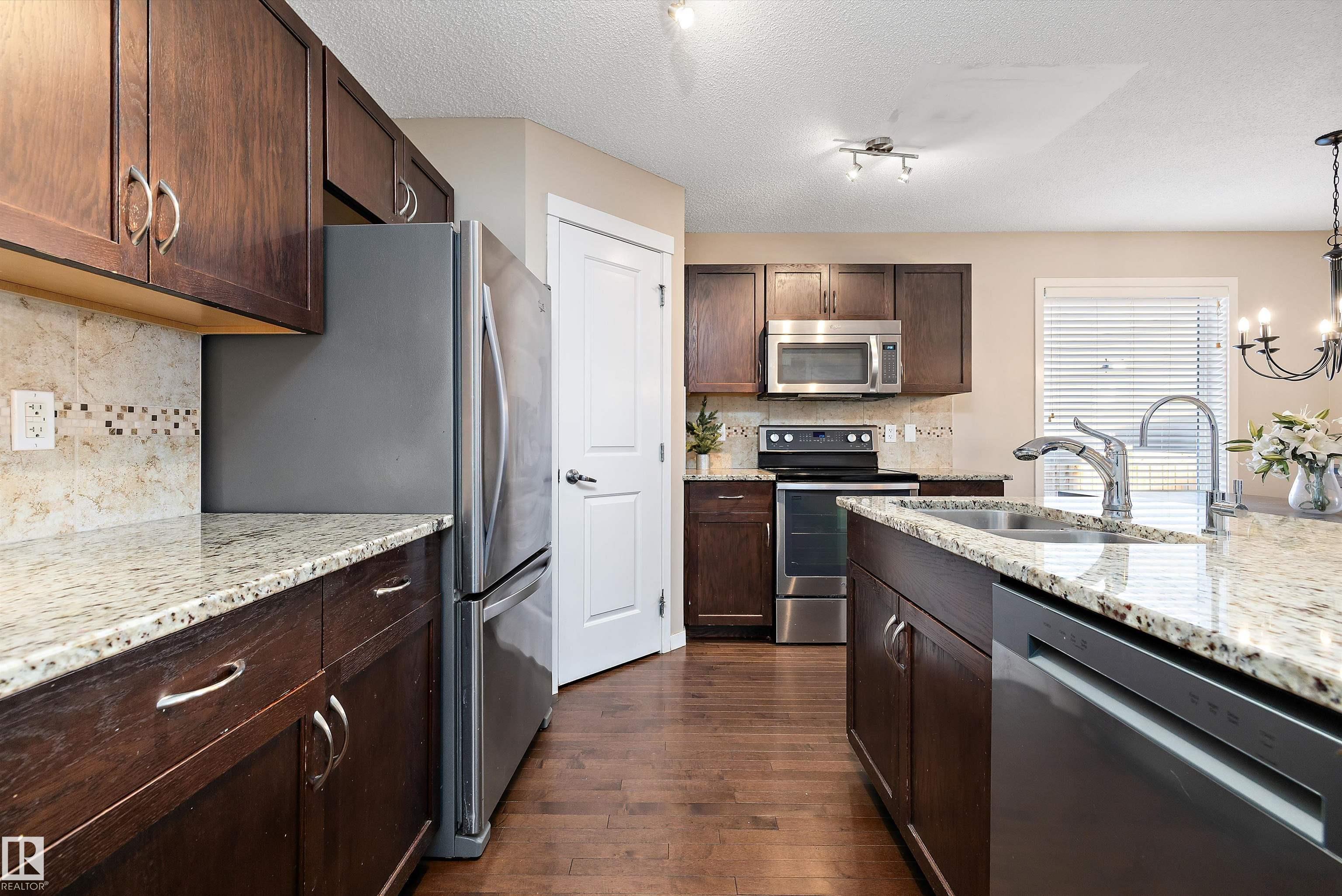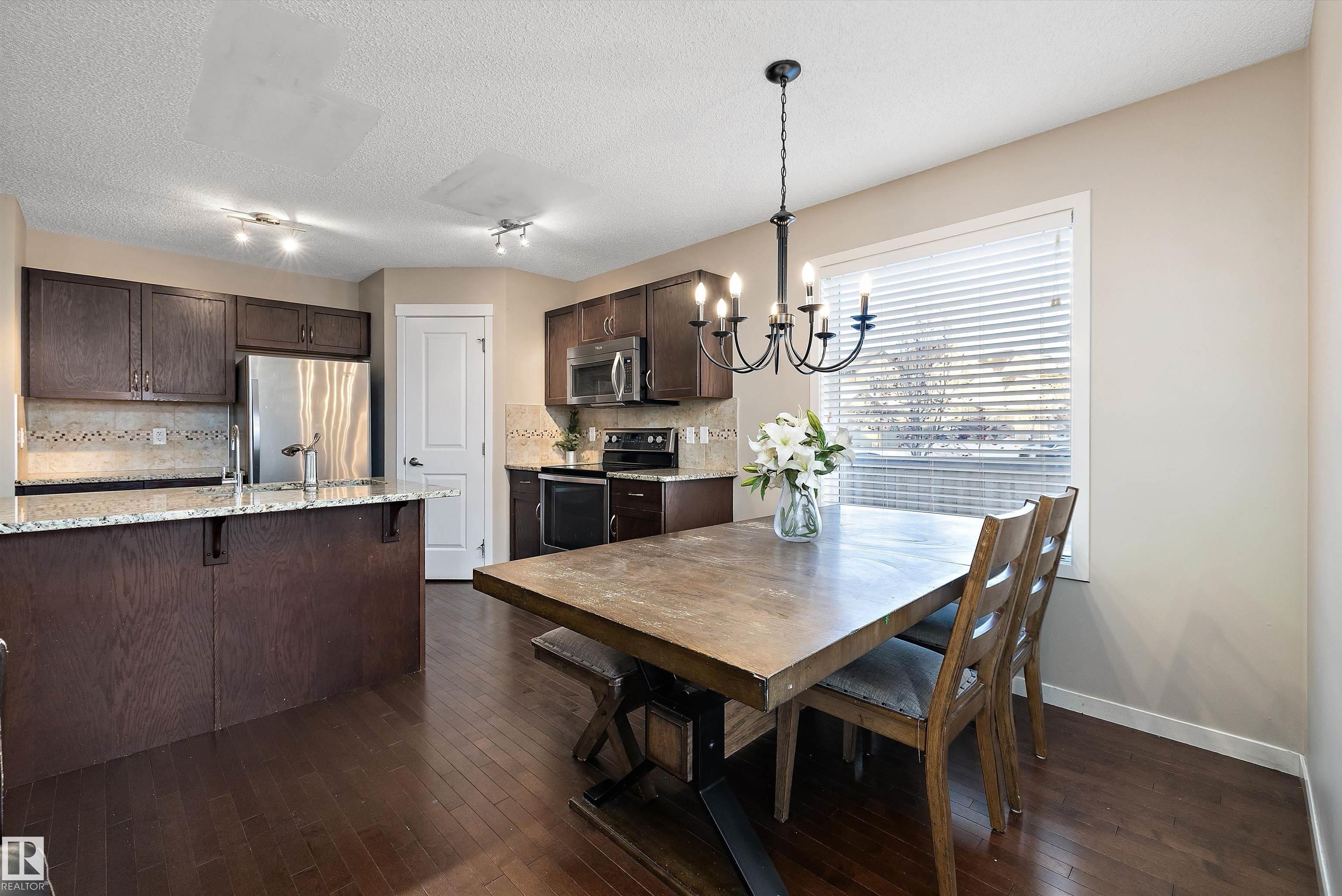 Welcome to this BEAUTIFUL 2 STOREY HALF DUPLEX in the DESIRABLE COMMUNITY OF WALKER in SOUTH EDMONTON. Offering 1,464 SQ FT OF LIVING SPACE, this home features 3 BEDROOMS, 2.5 BATHROOMS, a LARGE SOUTH FACING BACKYARD, and a DOUBLE DETACHED GARAGE. Enjoy FRESH PAINT THROUGHOUT, STAINLESS STEEL APPLIANCES, RICH HARDWOOD FLOORS, GRANITE COUNTERTOPS, a WALK-IN PANTRY, and a COZY GAS FIREPLACE. The MAIN FLOOR includes a VERSATILE BONUS ROOM that can easily be CONVERTED INTO A HOME OFFICE OR DEN. Upstairs you?ll find THREE GENEROUS BEDROOMS, a CONVENIENT SECOND FLOOR LAUNDRY, a 4 PC MAIN BATHROOM, and a 4 PC ENSUITE. CARPETS HAVE BEEN PROFESSIONALLY STEAM CLEANED for added peace of mind. The PARTIALLY FINISHED BASEMENT awaits your DESIGN AND FINISHING TOUCHES. FULLY LANDSCAPED and ideally located CLOSE TO PARKS, WALKING TRAILS, and SHOPPING. A FANTASTIC OPPORTUNITY in a FAMILY-FRIENDLY NEIGHBOURHOOD!