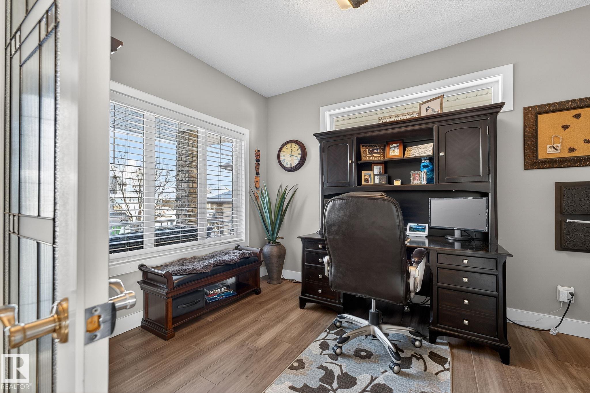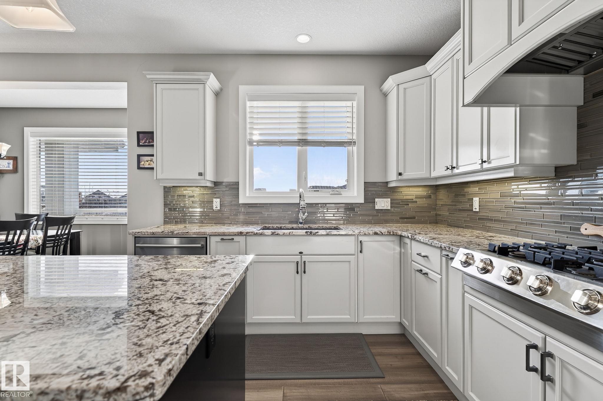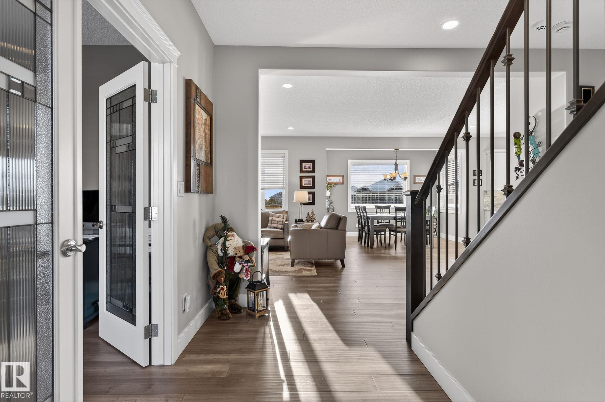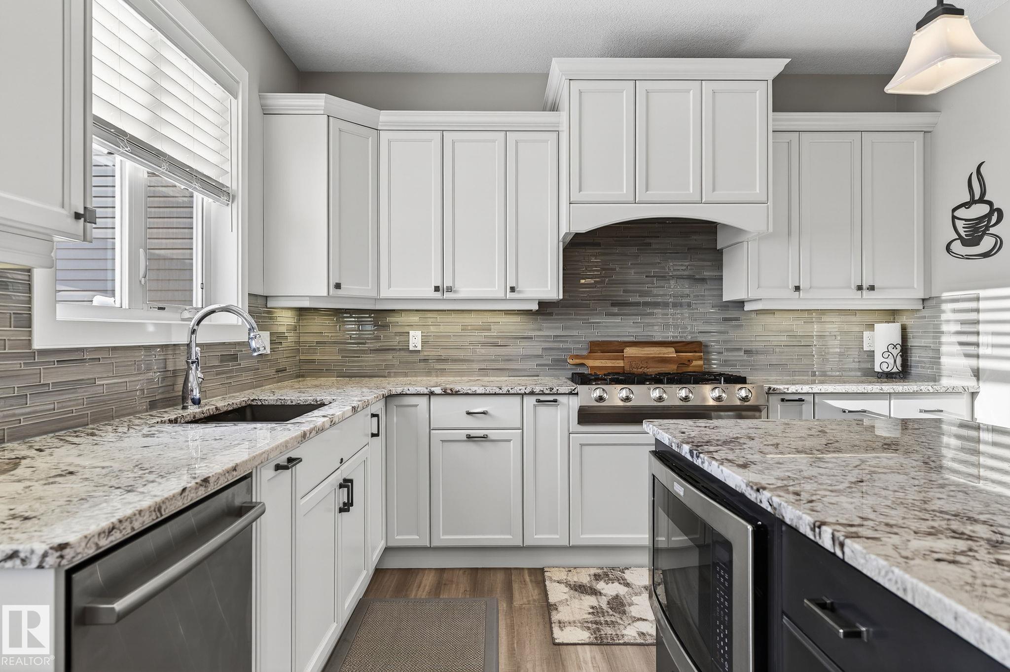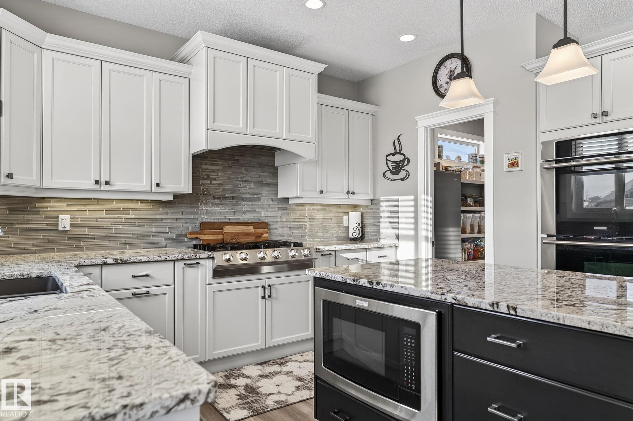 Tucked into a highly sought-after neighbourhood on a quiet cul-de-sac, this custom-built walkout home immediately stands apart for its craftsmanship and setting. Backing onto a tranquil pond and walking trails, the professionally landscaped yard with underground sprinklers is complemented by covered upper and lower decks designed for year-round enjoyment. The main floor boasts newer engineered hardwood flooring, a bright open layout with a dedicated office, inviting entertainment space, and a chef-inspired kitchen featuring a large island, gas cooktop, and two built-in ovens. Upstairs, generous bedrooms with walk-in closets?each with built-in organizers?plus a thoughtfully designed laundry room, and an expansive primary retreat with dual sinks, freestanding tub, and oversized walk-in closet provide both function and style. The fully finished walkout basement extends the living space with an entertainment area, wet bar, gas fireplace, and additional bedroom?perfectly balancing comfort and lifestyle.