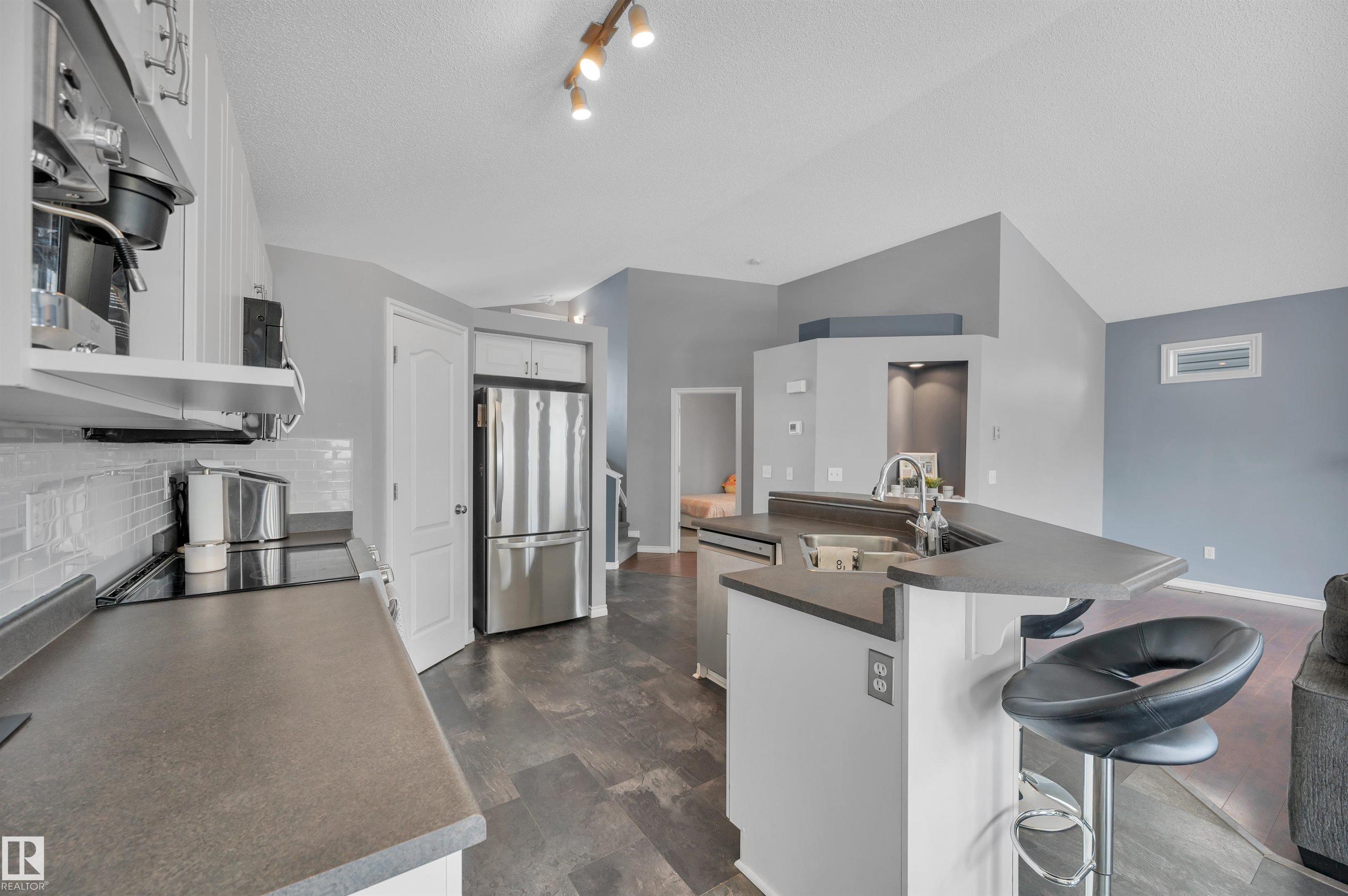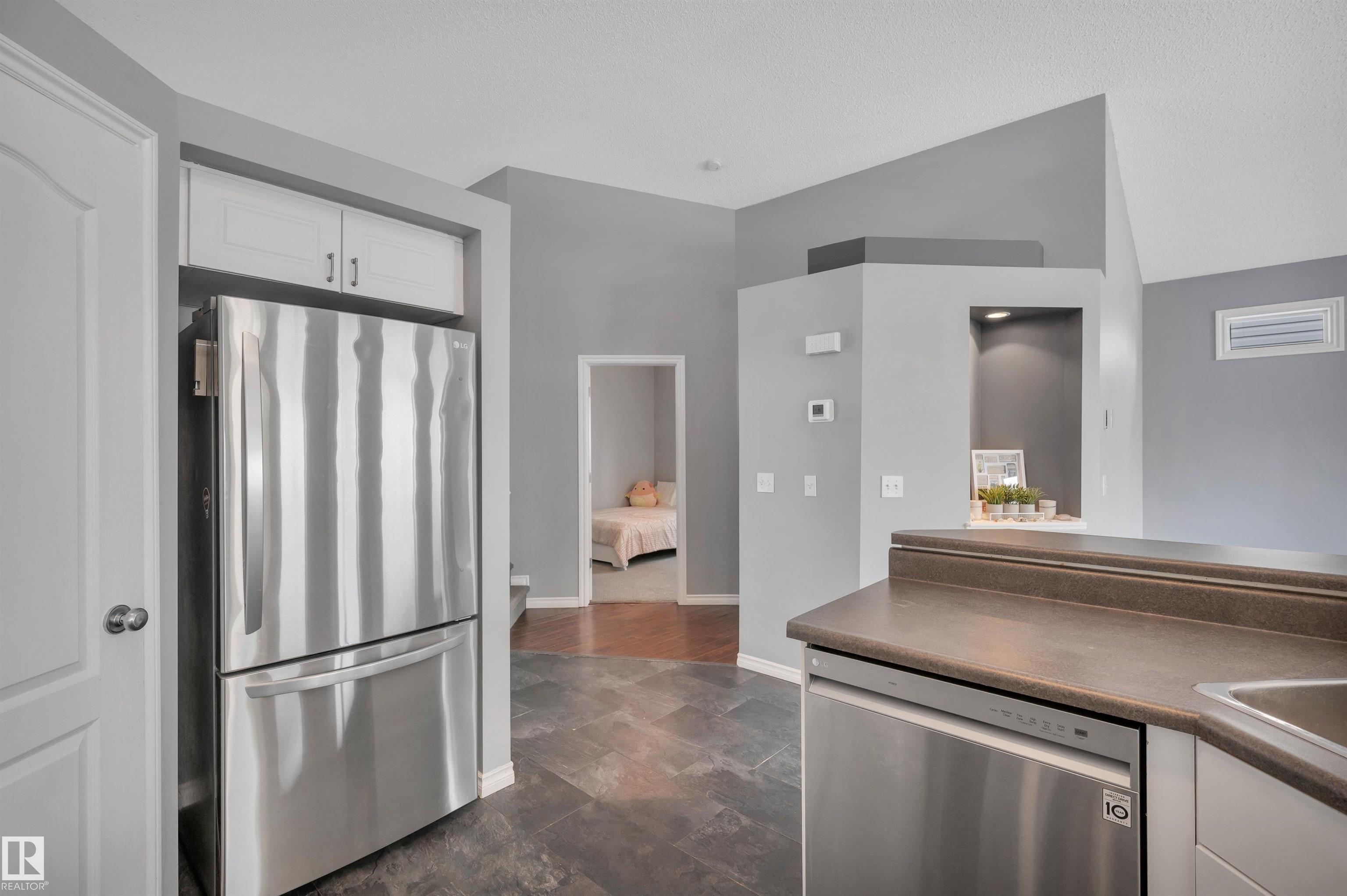 Welcome to this 1,314 sqft bi-level in Tribute, offering 3 bedrooms and 3 bathrooms. As you step inside, you?re greeted by a spacious front entry with 14? ceilings. The kitchen features ample cabinetry, a large island, stainless steel appliances, and a walk-in pantry, flowing into the dining area with floor-to-ceiling windows. The living room is centred around a gas fireplace and connects seamlessly with the main living space. The primary suite is set on its own level, offering added privacy with a vaulted ceiling, walk-in closet, and 4-piece ensuite. The lower level is partially finished with a large bedroom and 3-piece bathroom, with room to complete the remaining space to suit your needs. Central air conditioning and a backyard deck complete the home. Ideally located close to schools, shopping, parks, and walking trails.