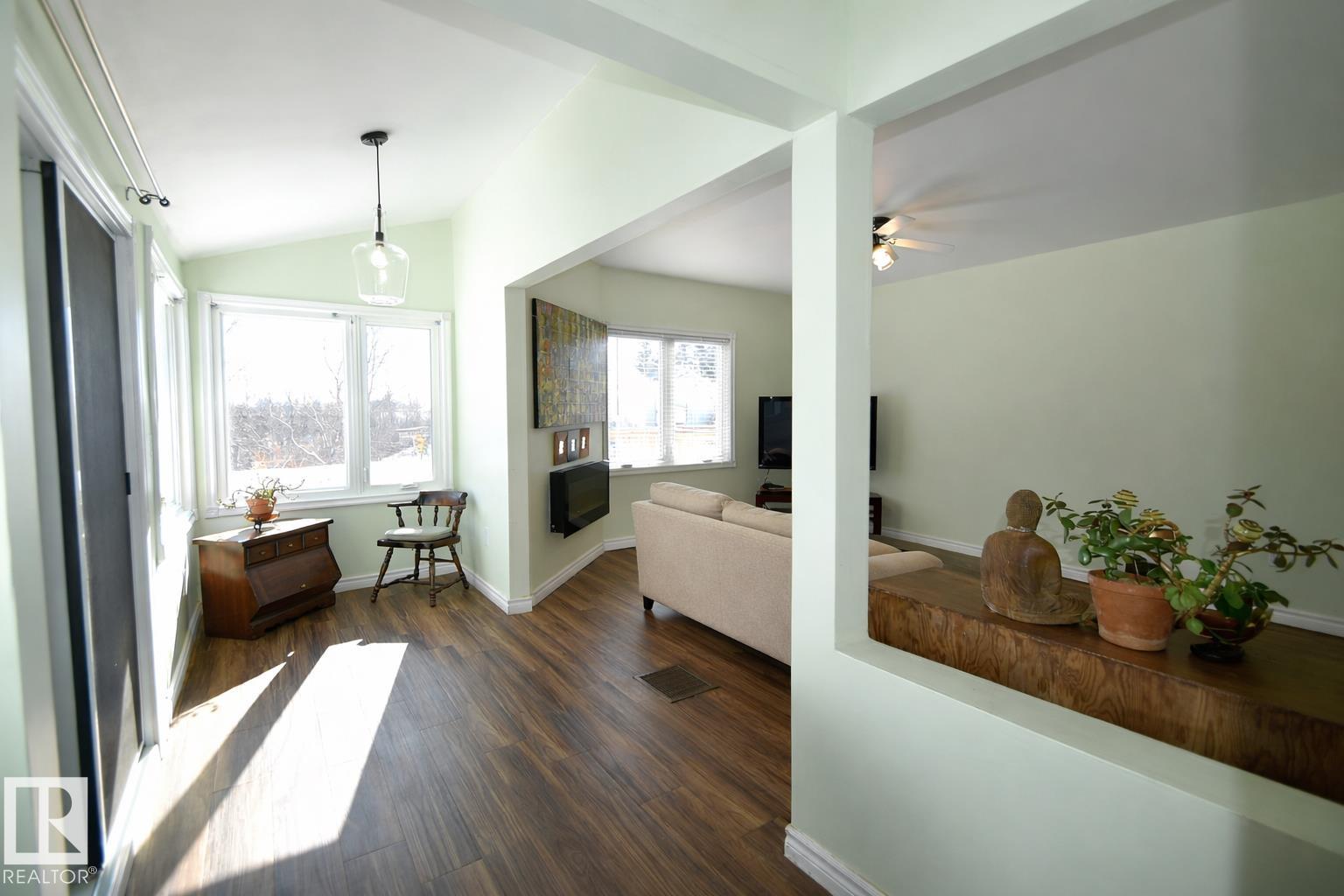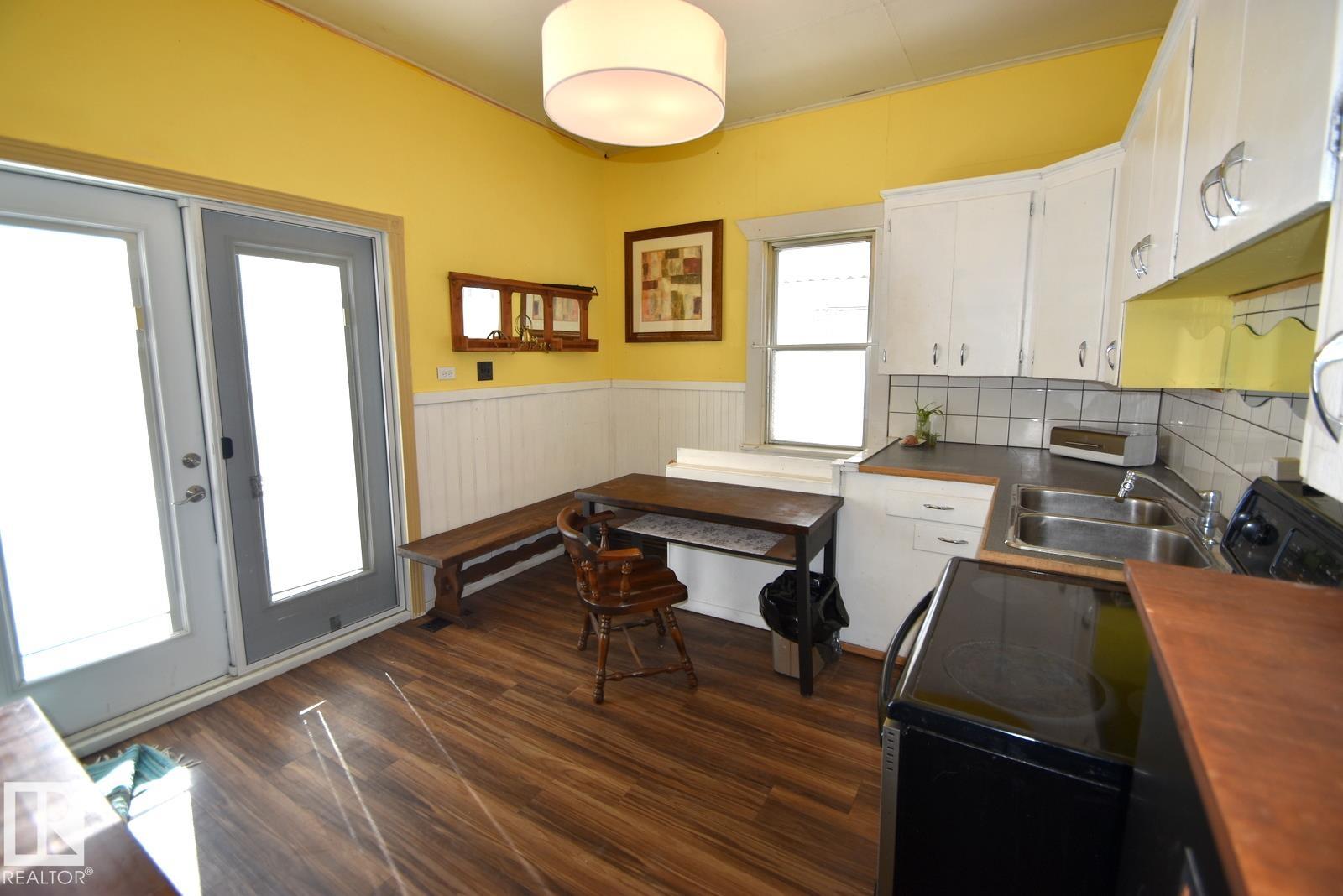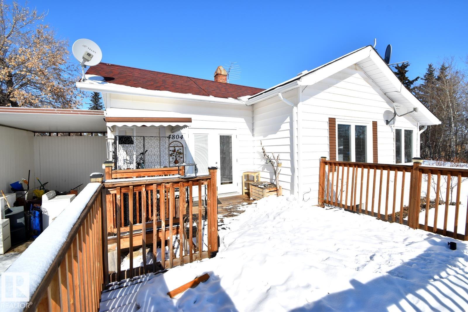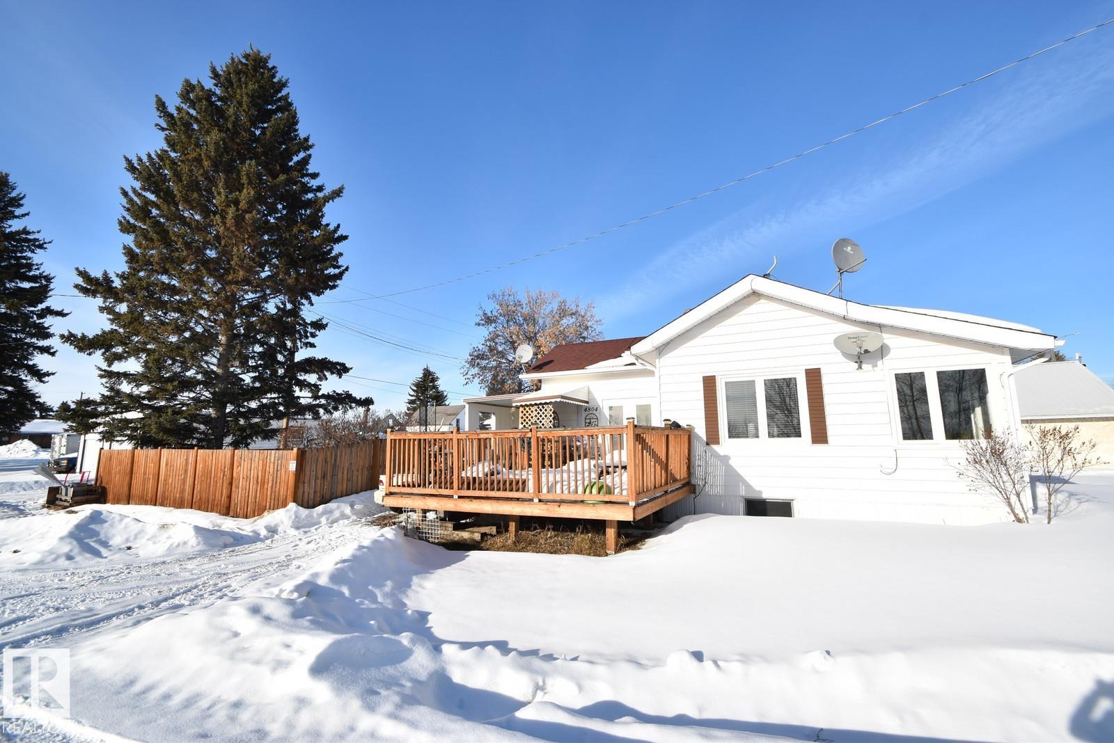 Affordable Small-Town Living with serene views! Welcome to this cozy home in the Village of Waskatenau! Offering 2 bedrooms plus a den, a bright sunroom at the front entry, and a spacious living room with a wall-mounted electric fireplace and large windows. The kitchen opens to a south-facing deck overlooking a ravine across the road, where you can enjoy your morning & evening sunshine! The primary bedroom features patio doors leading to a private, fully fenced backyard. Additional highlights include an attached carport to park in, and a basement with laundry, utilities, and a large windowed room suitable for future bedroom or recreation space. The Village of Waskatenau backs onto the Iron Horse Trail. Has most amenities nearby including a K-12 school and arena + more. Conveniently located one hour NE of Edmonton at the junction of Hwy 28 & Hwy 831.