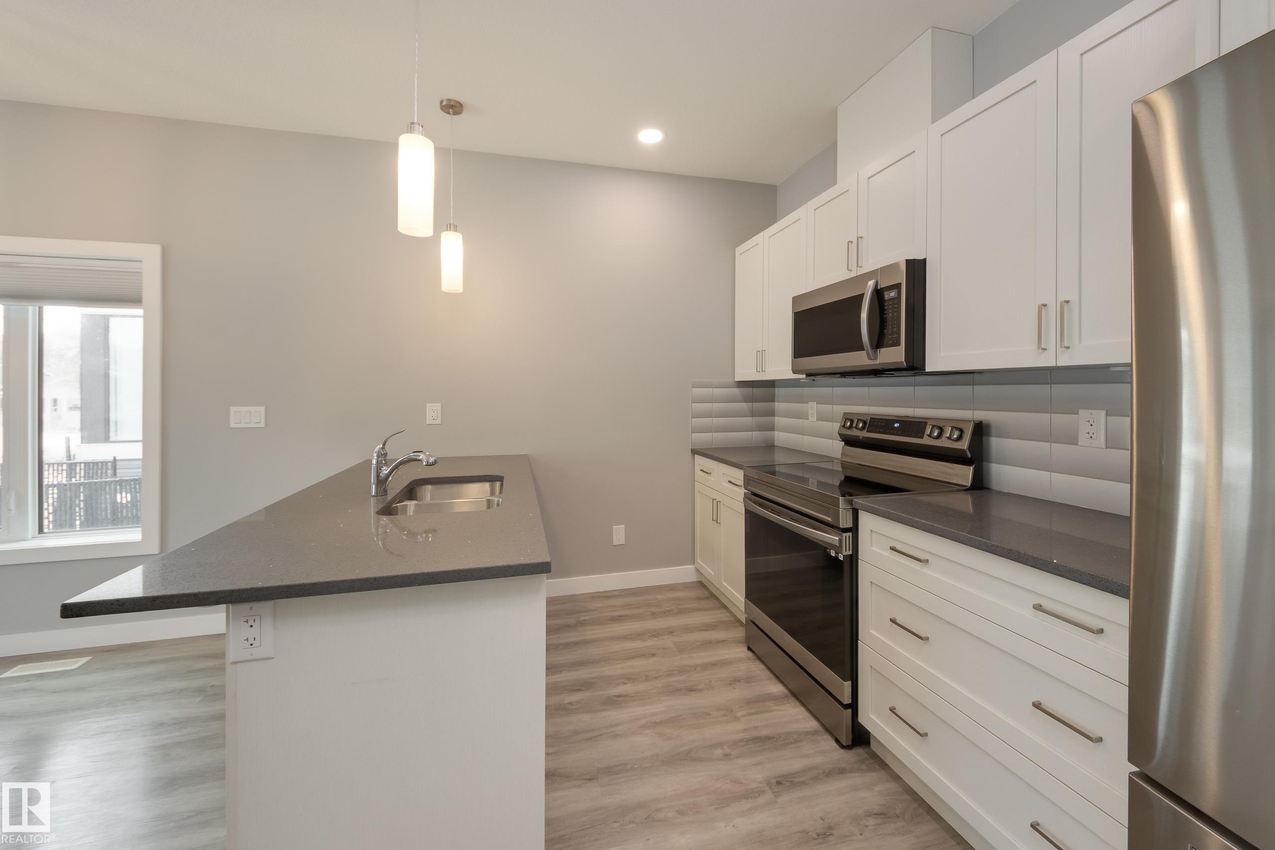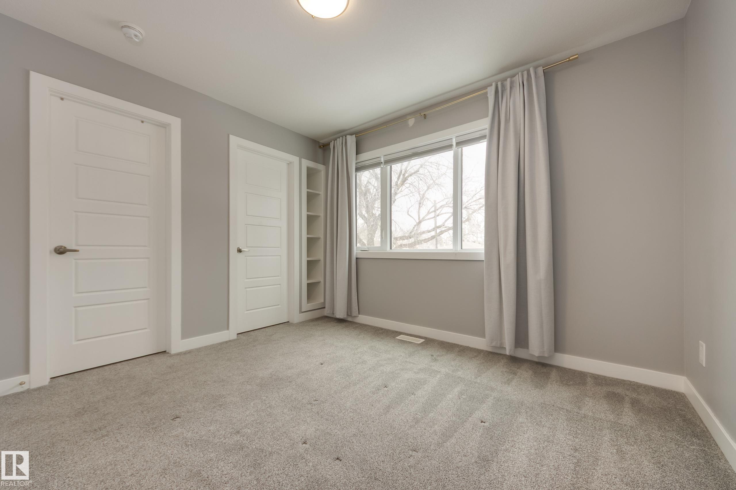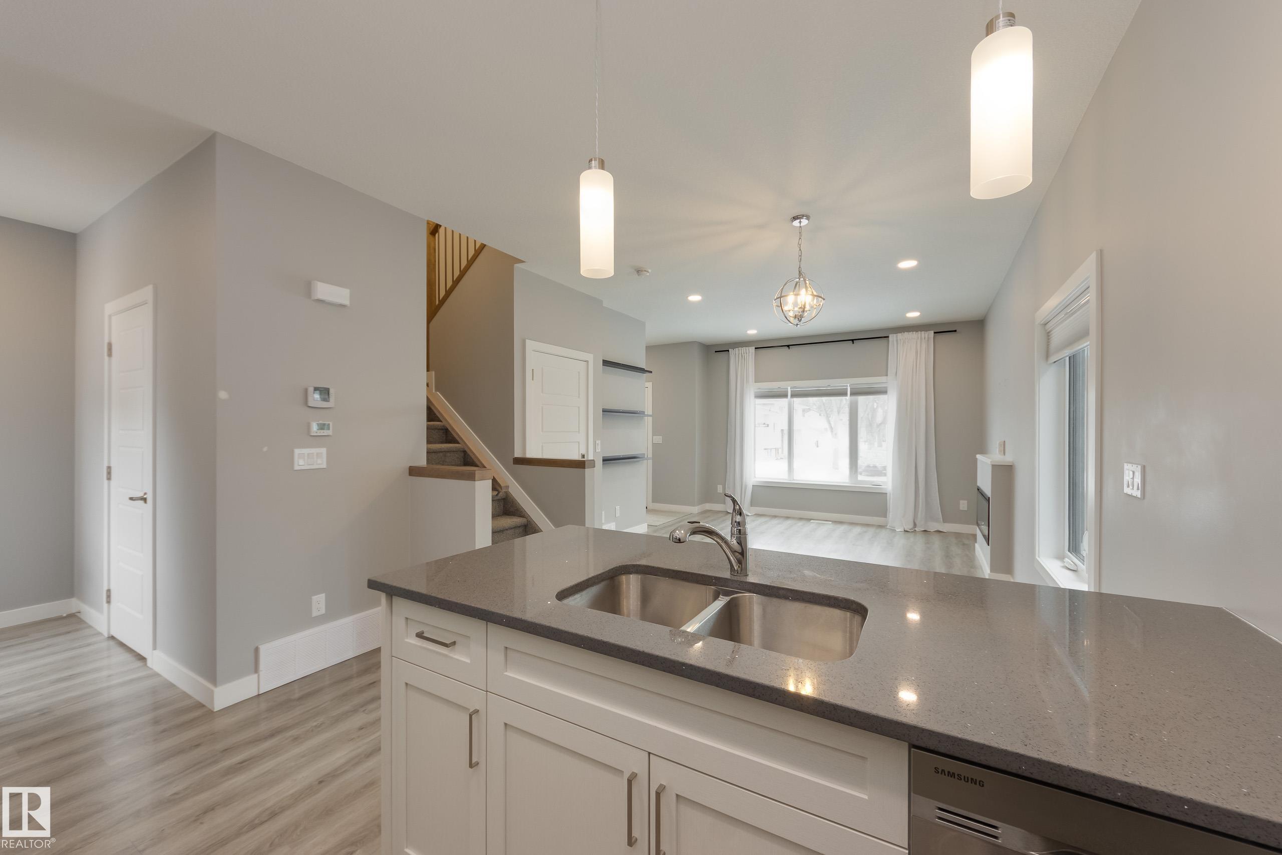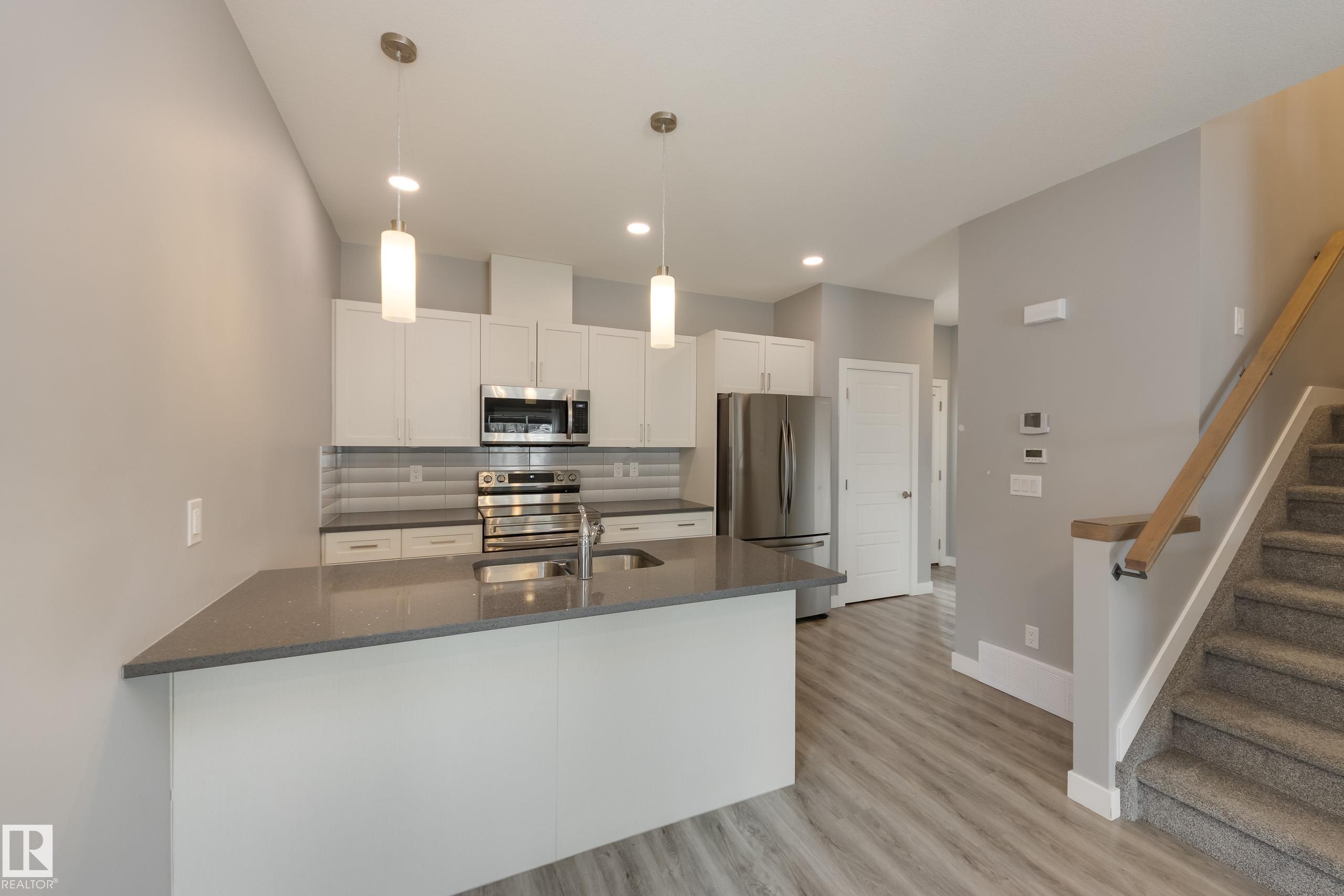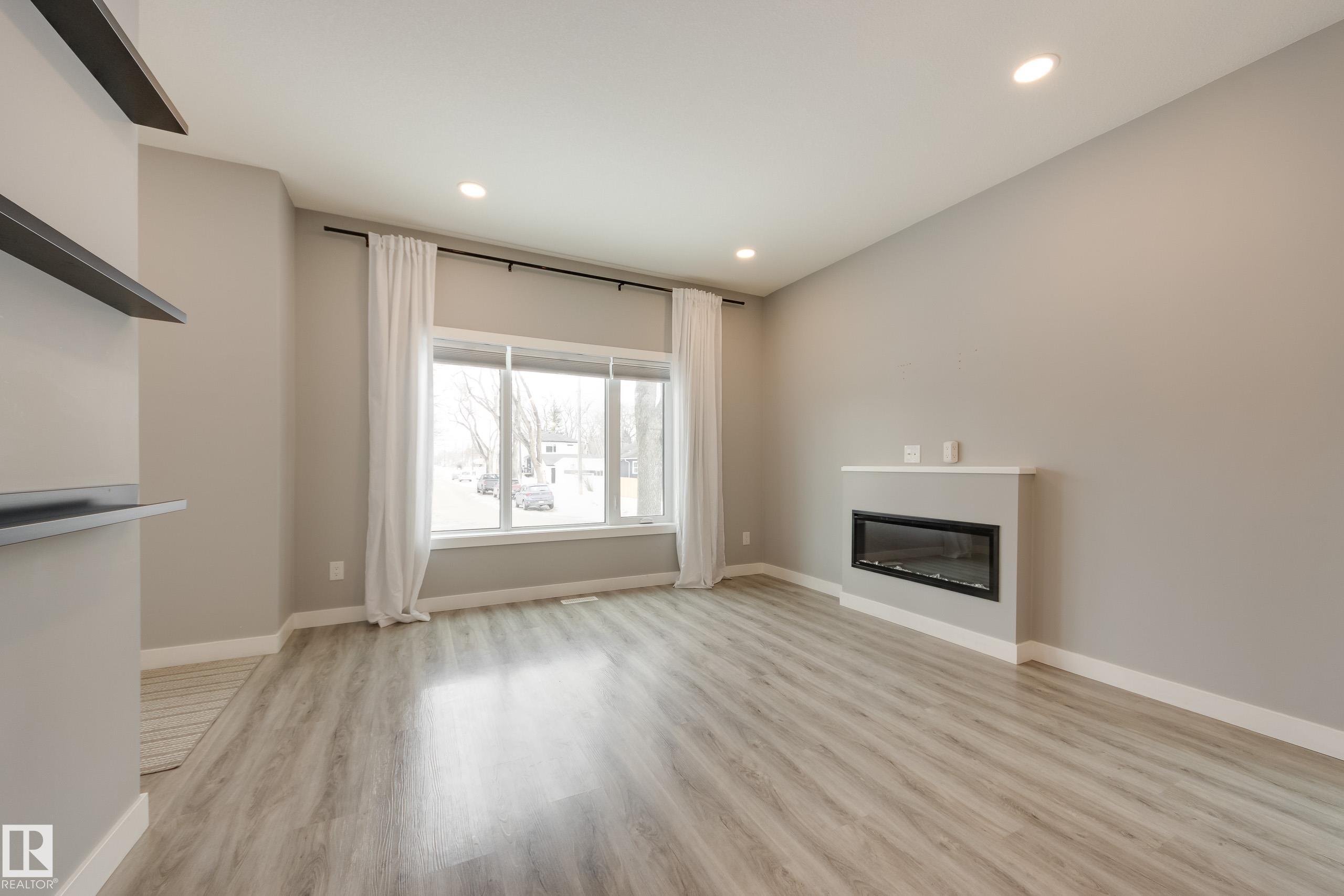 Front Half Duplex with Legal Suite & No Condo Fees! This well-designed 3 bed, 2.5 bath home offers just over 1,179 sq ft above grade with a functional open-concept layout perfect for modern living. The main floor features 9? ceilings, durable vinyl plank flooring, and triple-pane energy-efficient windows that fill the home with natural light. The kitchen showcases quartz countertops, SS appliances, a stylish backsplash, and ample counter space. The inviting living room features a big picture window and electric F/P, flowing seamlessly into the dining area. A convenient 2pc bathroom completes the main level. The primary suite is a private retreat with a walk-in closet and 3pc ensuite w standup shower. Two additional bedrooms and a 4pc bath complete the upper level. The basement features a LEGAL SUITE, offering excellent revenue potential. Outside you?ll find a single car garage. Located in Alberta Avenue, a neighborhood experiencing exciting revitalization with newer homes and redevelopment projects.